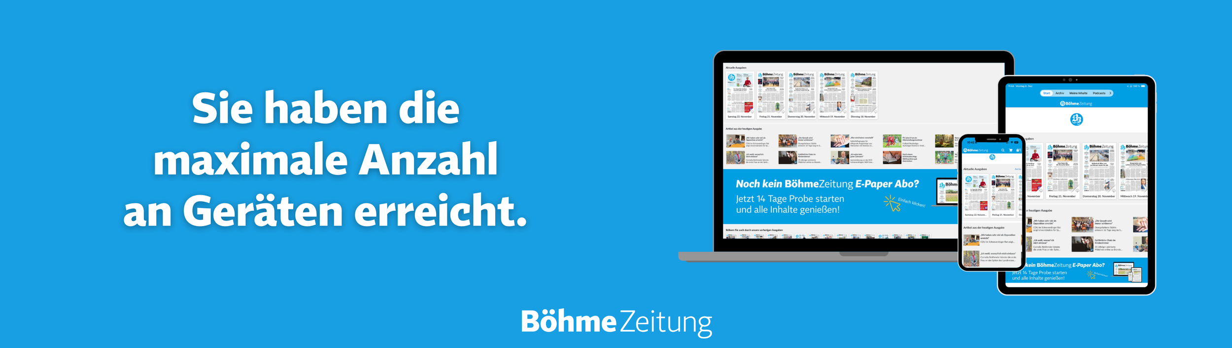 Sie haben das maximale Geräte-Limit von drei Geräten erreicht. Das bedeutet, dass Ihr E-Paper-Zugang bereits auf drei verschiedenen Geräten aktiv ist und Sie sich daher momentan nicht auf einem weiteren Gerät anmelden können.