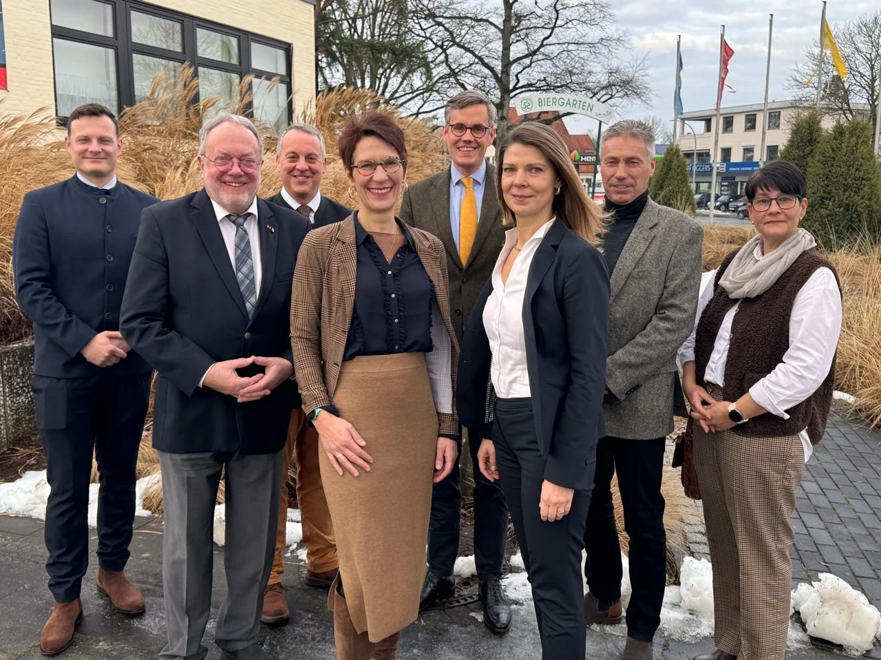 Zwei Kandidatinnen und ihre Unterstützer von der Munster-Union (von links): Simon Schleupner, Gerd Engel, Peter Westermann, die Landratskandidatin Cornelia Reithmeier, Dr. Carsten Emmann, Bürgermeisterkandidatin Anna Adamczak, Stefan Sorge und Gaby Skottka. Foto: ari