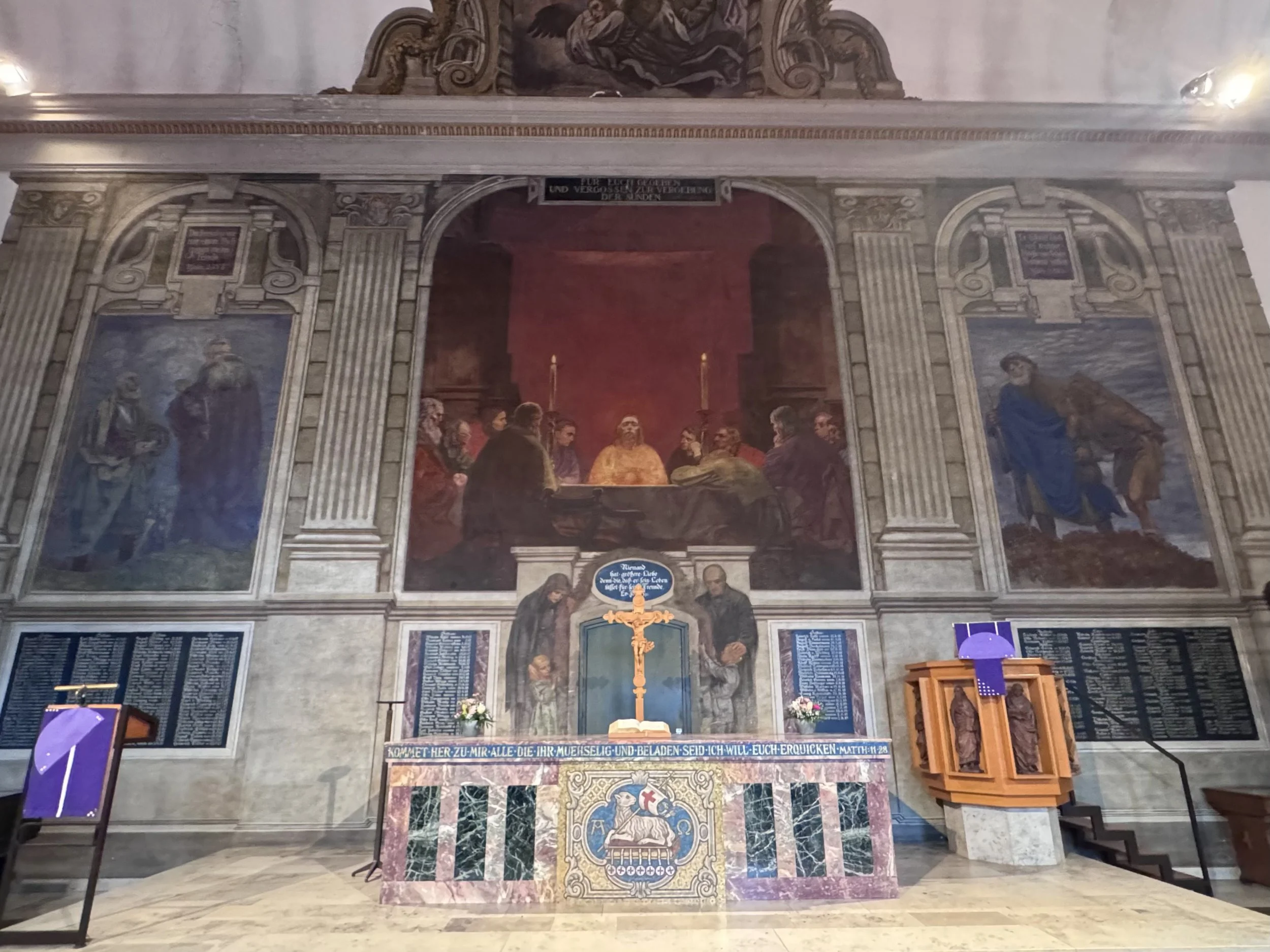 Die Altarwand, die der Rotenburger Maler und Grafiker Rudolf Schäfer, in St.-Johannis gestaltete, ist auch ein Denkmal für die Gefallenen des Ersten Weltkriegs in Soltau. Foto: at